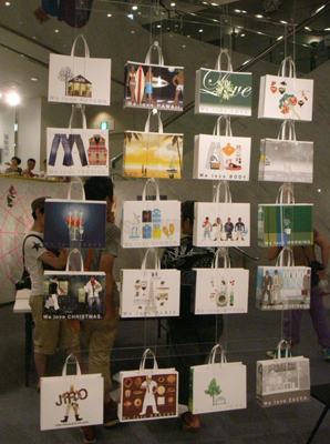 ゲイシーンのさまざまなところで活躍しているjiroさん。今回は両面に作品をプリントしたバッグを展示するという素晴らしくオシャレなスタイルでした。