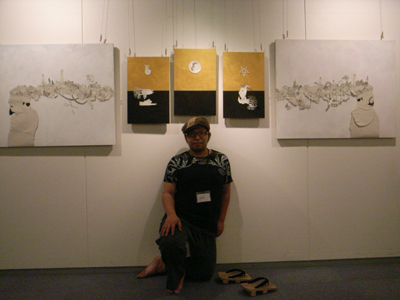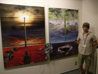 圧倒的な画力を誇る世界さん。昨年までのフライヤーの絵を描いた方です。今回は人工と自然、昼と夜、太陽と月など、対立するものを組み合わせた幻想的な作品で魅せてくれました。