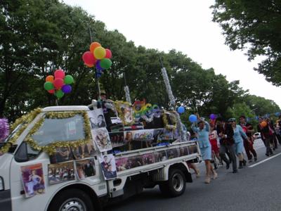こうしてパレード(行進)が終わった後は、しばらく広場で友達としゃべったり、素敵な衣装の人と記念写真を撮ったり、ブースを見て回ったりという感じでみなさん楽しんでいたと思います(「glee」のオフ会状態な集団もいたり)