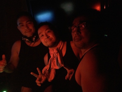 実は、今回のイベントは、お店を愛する有志の方たちが「XANADU」の活性化を図るために立ち上がり、企画したものでした。どうせやるなら本気でやろう!ということで、何日も前からホームセンターに買い出しに行き、布を裁断し、天井から吊り下げ、つっぱり棒などを使ってパーティションをこしらえ、といった作業を夜遅くまでやっていたそうです(ちなみに、有志代表の方は、伝説の「淫獣集会」の設営を担当していた方だそう。どうりで…)。当日も、いろんなDJさんたちがお手伝いに来てくれていました(「新宿二丁目・DJランキング」にランクインしてるような方が床の掃除をしていたり、今までイベントで脱いだことがない方がパンツ姿を披露したり)。「XANADU」を愛するみなさんが、お店のために(まさに)一肌脱ぎ、無償で働いてくれていたのです。胸が熱くなる思いがしました。
