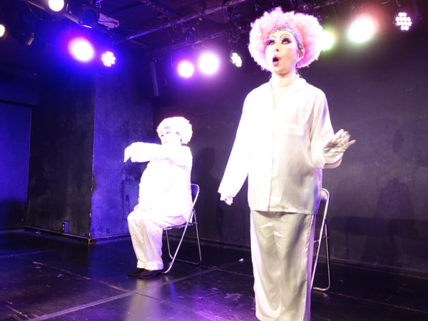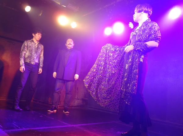 関根さんが男役でしかもボスキャラ中のボスキャラを演じていたり(堂に入ってました)、エスムラルダさんが(以前のガラかめのアルディスの時のように)天使のようなプリンセスのようなヒーローを演じていたり、クレジットされていませんでしたが石関準さんがシスター役で出ていたり、いい意味で驚かされるところがいろいろありました。残念ながらアルピーナさんは出ていなかったのですが、モイラさんがベアトリスという「おきゃん」な娘の役で、キラキラと美しさを振りまいていて、華やかでした。あと、オバマさん(グレース・ジョーンズみたいな女装をした方)の表情がいちいち面白かったです(写真で見ると漫画感スゴいです。なかなかできないことです)。二丁目の見回りをしてる3人も、キャッツアイっぽくてよかったです。