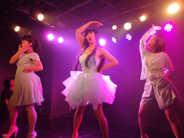 ジオラママンボガールズのショー。2曲目の「ひらがなおぼえよう」的な内容の歌が、実に面白かったです。ジオマンは関根さんの無表情さも芸のポイントだと思うのですが、今回、そこが見事にぴったりハマっていて、おかしみを醸し出していました。