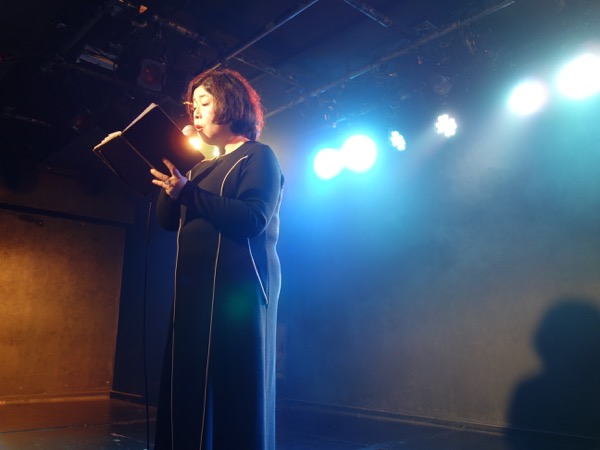 水月モニカさんの「クイアリーディング」。たぶん数少ない、レズビアンであることをオープンにしているパフォーマーの方です。今回朗読したのは、熊と小鳥と山猫の物語。親友の小鳥が亡くなり、その亡骸を箱に入れて持ち歩き、悲しむ熊に、山猫がバイオリンを聴かせ、旅に出ようと誘う、悼みと再生の物語。個人的に、大切な親友を亡くした年でしたので、このお話はとても響きました。