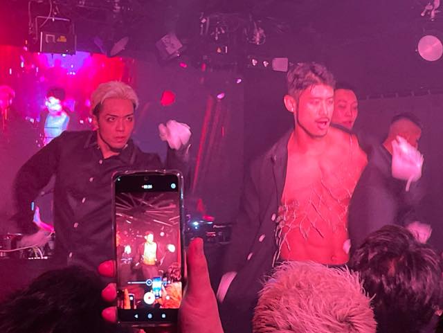1:45からは(言わずと知れた『ボーイフレンド』出演の)USAKさんのスペシャルショー。ダンサーたちを従えて、カッコよくセクシーなショーを披露しました(ちなみに、たぶんここじゃないと見られないと思うのですが、「ESPOIR」タイムのときのUSAKさん、ずいぶんと思い切ったフェミニンな装いで登場し、フロアを沸かせてました)