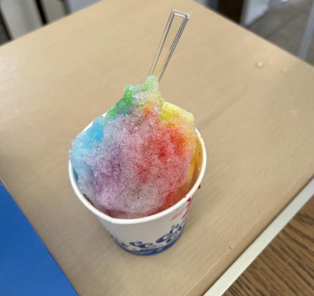 その後はしばらく自由行動で、それぞれかき氷を食べたり、雑貨屋へ行ったり、柳ヶ瀬商店街を散策しました。かき氷は、レインボーを選ぶと自分でシロップをかけてレインボーカラーにカスタマイズすることができるため、みなさん楽しそうにレインボーかき氷を作っていました。雑貨屋ではフラッグを見て話しかけてくれる人がいたそうです。