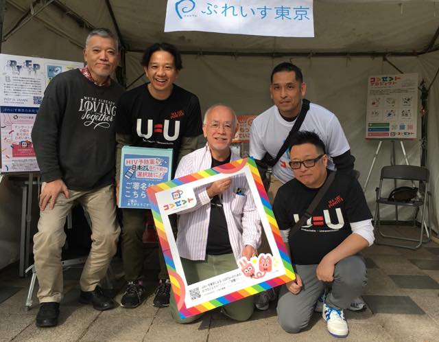 パレードには参加していませんでしたが、長崎県大村市から松浦慶太さんと藤山裕太郎さんのカップルも来られていて「同性パートナーにも雇用保険移転費を」「現在、同性カップルにも社会保障を求めて裁判中」と書いたプラカードを持ってアピールしていました。裁判、頑張っていただきたいです。