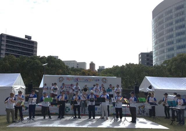 WanQのみなさんの演奏が始まりました。全国から集まった九州レインボープライド限定の吹奏楽隊です。