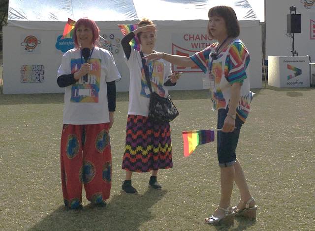 あなたののぶゑさんが発信しているポッドキャストの公開録音では、聞き手のかんだーにゃさんとともに、未来の子どもたちへの思いが語られていました。パレード中も(歩かない方のために)ステージは続いていて、虹組ファイツのみなさん、フェアリーさんのパフォーマンスがありました。