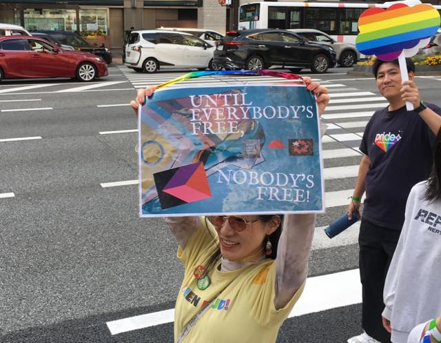 いま世界的にLGBTQへのバックラッシュが吹き荒れていて、日本だって全然呑気に構えているわけにはいかない状況で、これからもっと強く吹くかもしれない逆風に備えて、今まで以上にLGBTQ+Allyコミュニティの連帯を強めていくことが大事だと思います。一人ひとりは弱い、けれども、だからこそ、仲間とつながり、結束力を強めていこうよと思うわけです。パレードってそのための場でもあるんじゃないでしょうか。ふだんはそれぞれの持ち場で頑張ってる多様な人たちが一堂に会して、健闘を讃え合ったり、元気をもらえたり。そういうパレードを開催してくださっているみんなに感謝!です。