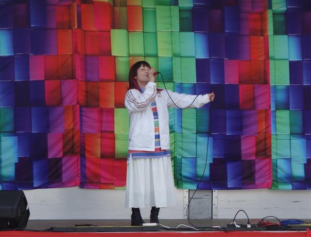 それから、地元岡山で音楽活動をしているまっつんさんがライブを披露しました。みなさんどの曲が聴きたいですか〜?と言って3曲くらい挙げて会場の反応を聞いて、ドリカムの『うれしい!楽しい!大好き!』を弾き語りしてくれたり、とてもポップでフレンドリーで楽しいステージでした。その中で、副代表のYOUさんが登場し(歌の活動もしているそうです)、今年の話題曲であるback numberの『ブルーアンバー』を歌ってくれる場面もありました(素敵でした)