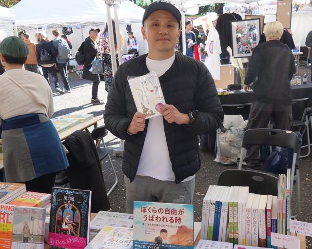 それから、小林りょう子さんが席を外してしまい、戻って来られたお写真を撮らせてくださいと言って、結局タイミングを逸して写真を撮れなかったのですが、「LGBTの家族と友人をつなぐ会」もブース出展していました。そこにいらした方のお話によると、最近は当事者の子を持つ親御さんがずいぶん若い世代になっている、人々の理解は進んだものの、自治体や学校側の対応が柔軟でない地域もあり、そこが課題になっている、とのことでした。