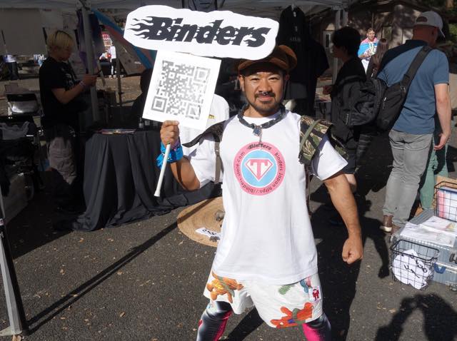 FTM GOGOとしても活躍してきたYOSHIYUKIさんがいらっしゃいました。Binders Japanというトランスジェンダーやクィアをフィーチャーしたアイコニックなアイテムを展開するブランドのブースで、「They/them」などのプロナウンをデザインしたり、トランスジェンダー・プライド・フラッグのカラーリングをロゴ化したり、素敵なラインナップでした。