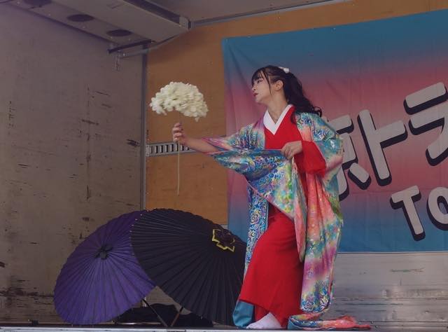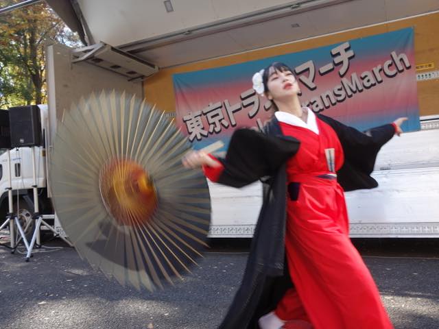 2年連続でミスインターナショナルクイーンの代表に選ばれた椎名理火さんが、日本舞踊のパフォーマンスを見せてくれました。中島美嘉さんの「花束」などの曲を使ったとても美しいパフォーマンスでした。演じ終わった後のMCで、体調を崩していて、今回が復帰パフォーマンスとなったと、途中、涙が止まらなかったと語っていらっしゃいました。青空の下でたくさんの方の前で披露できて感無量です、とも。