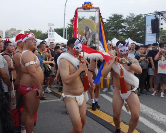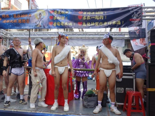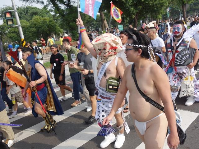 一方で、パレードもブースが並ぶ広場も極めて自由で、日本では叩かれそうな露出度の高い格好やセクシャルなパフォーマンスもOKで(さすが、同性婚が認められるような国は進んでます)、そこが台湾の魅力でもあり、グローバルスタンダードでもあると思いました(欧米ではヌーディストとかもパレードを歩いてます)。「性解放なくしてゲイ解放なし」を再確認させられました。