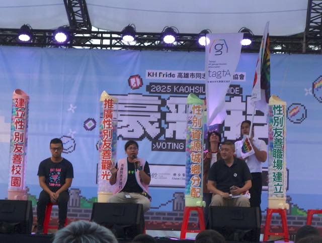 「高雄同志大遊行は台湾南部の最大のLGBTQのプラットフォームであり、また、選挙と深く結びついている。同性婚が認められたあと「パレードをまだやる必要があるのか」という声も聞かれるが、闘いはまだまだ終われない。同性婚はステップの一つであって、地方と都市部の格差もあるし、ジェンダーフレンドリーなスペースの確保もできていないし、課題は山積みだ。国政選挙にせよ地方選挙にせよ、投票がいかに大事かということは韓国瑜(ハン・グォユィ)の例が物語っている(彼は市のジェンダー政策の担当者にアンチLGBTQの人物を据え、様々な手段によってあらゆる市政の部署を保守化させた)。来年はまた地方選挙がある、あのような市長が現れないよう、我々は連帯し、ジェンダー平等やLGBTQインクルーシブな人物を選ばなければ」