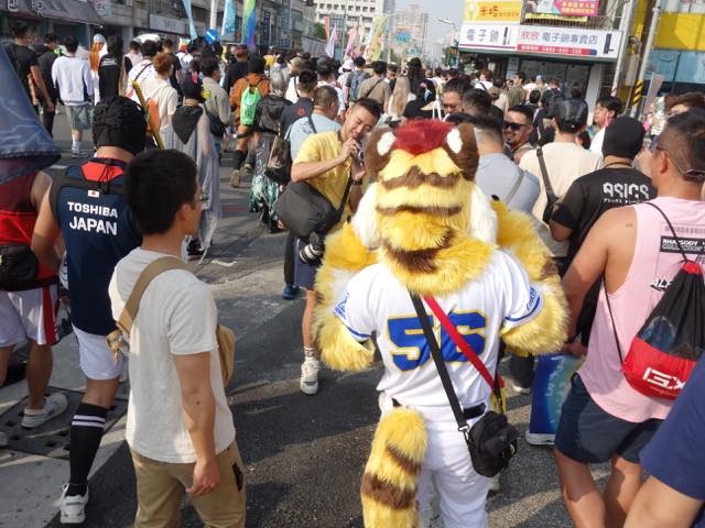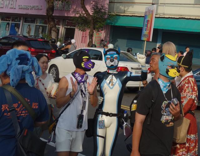 途中でどんどん人が増えていったようで、フロートが全部帰着したあとも、ものすごくたくさんの人たちがあとからあとから歩いてきて、圧倒的でした。数えきれないですけど、数万人は参加してたんじゃないかと思います。台北や台南もそうですが、ステージやブースよりもとにかくパレードを歩くということ、自分らしい格好でパレードすることを第一に考えてる方が非常に多かった印象です。ゲイ的なSEXYさやkinkyであることへの屈託がなく、自由にのびのびとそれを表現できている(警察も含めて誰もそれを取り沙汰しない)のが本当にうらやましいです。