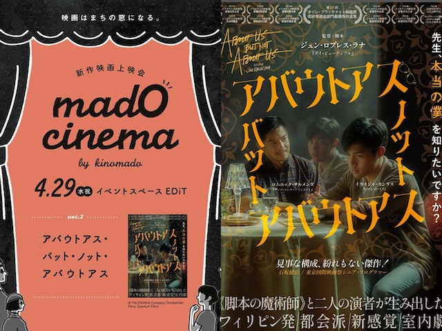 札幌の自主上映グループ「キノマド」が手がける新作映画上映企画「mado cinema」で『アバウトアス・バット・ノット・アバウトアス』が1日限り上映されます。札幌のみなさん、ぜひ!