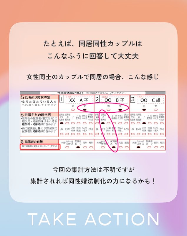 国勢調査で同性カップルも同居家族として回答できるようになりました