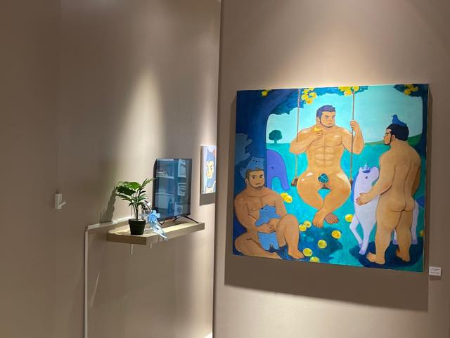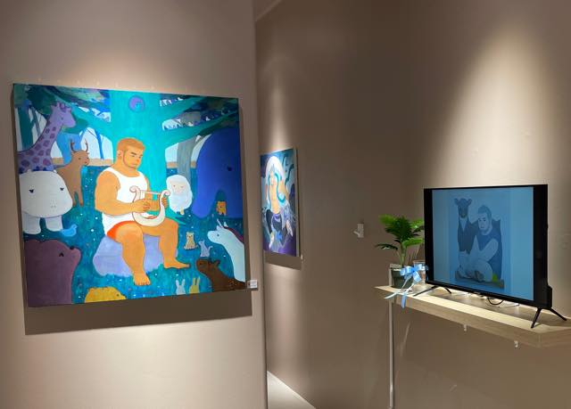 3人の男性の作品、パッと見、めっちゃセクシー!と思いましたが、よく見ると、これまで同様、アダムとイブの「楽園」とか、ノアの方舟とか、聖書からの引用があるように見受けられます。ユニコーンは欧米ではLGBTQのシンボルになっている生き物。その角には水を浄化し、毒を中和する不思議な特性があると言われています。いろんな物語やメッセージが読み取れます。