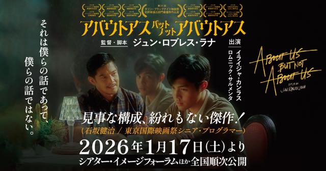 10年前の東京国際映画祭で観客賞と最優秀男優賞に輝いた『ダイ・ビューティフル』を憶えている方もいらっしゃることでしょう。フィリピンの「ミスコンの女王」として名を馳せたトランス女性の突然の死とあまりにも美しく感動的な葬儀を描いた、素敵な作品でした。その『ダイ・ビューティフル』のジュン・ロブレス・ラナが監督・脚本を手がけ、発表するやいなや国内外の映画祭で20冠近くに輝き、フィリピンでは舞台化も決定している話題作が『アバウトアス・バット・ノット・アバウトアス』です。「死」をトリガーに「生」と「性」に鋭くメスを入れた「都会派・新感覚・会話劇」。愛する人との別れ、LGBTQ+、性加害、SNS世代の危うさなど、さまざまなテーマを盛り込みながら現代フィリピンのリアリティを描き出した作品です。